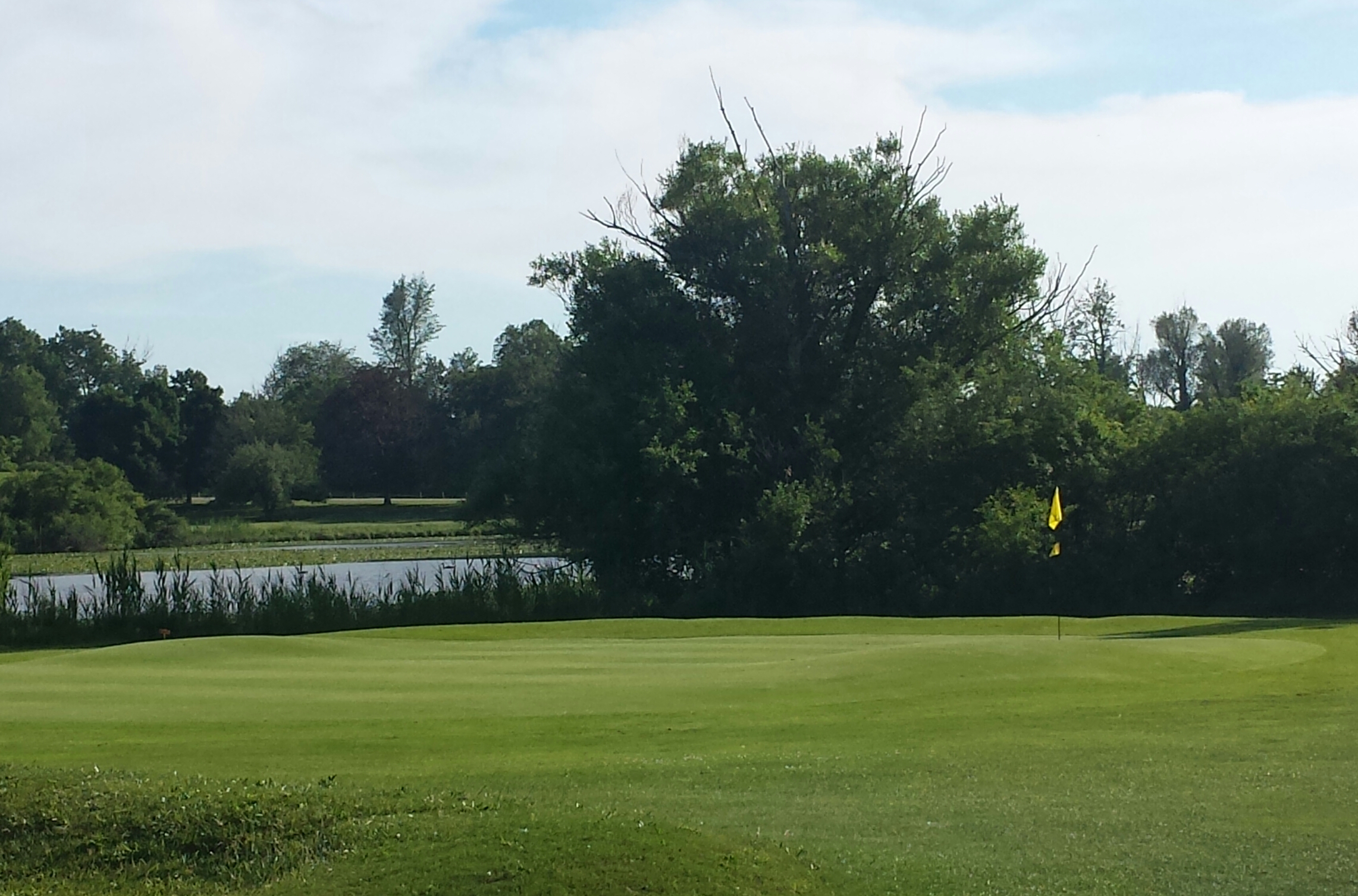 As you can see from the photo to the right, you can shorten your approach by attempting to cut the dogleg, but if you miss left you usually will find the lake, or at best the high grass and bushes guarding the lake.