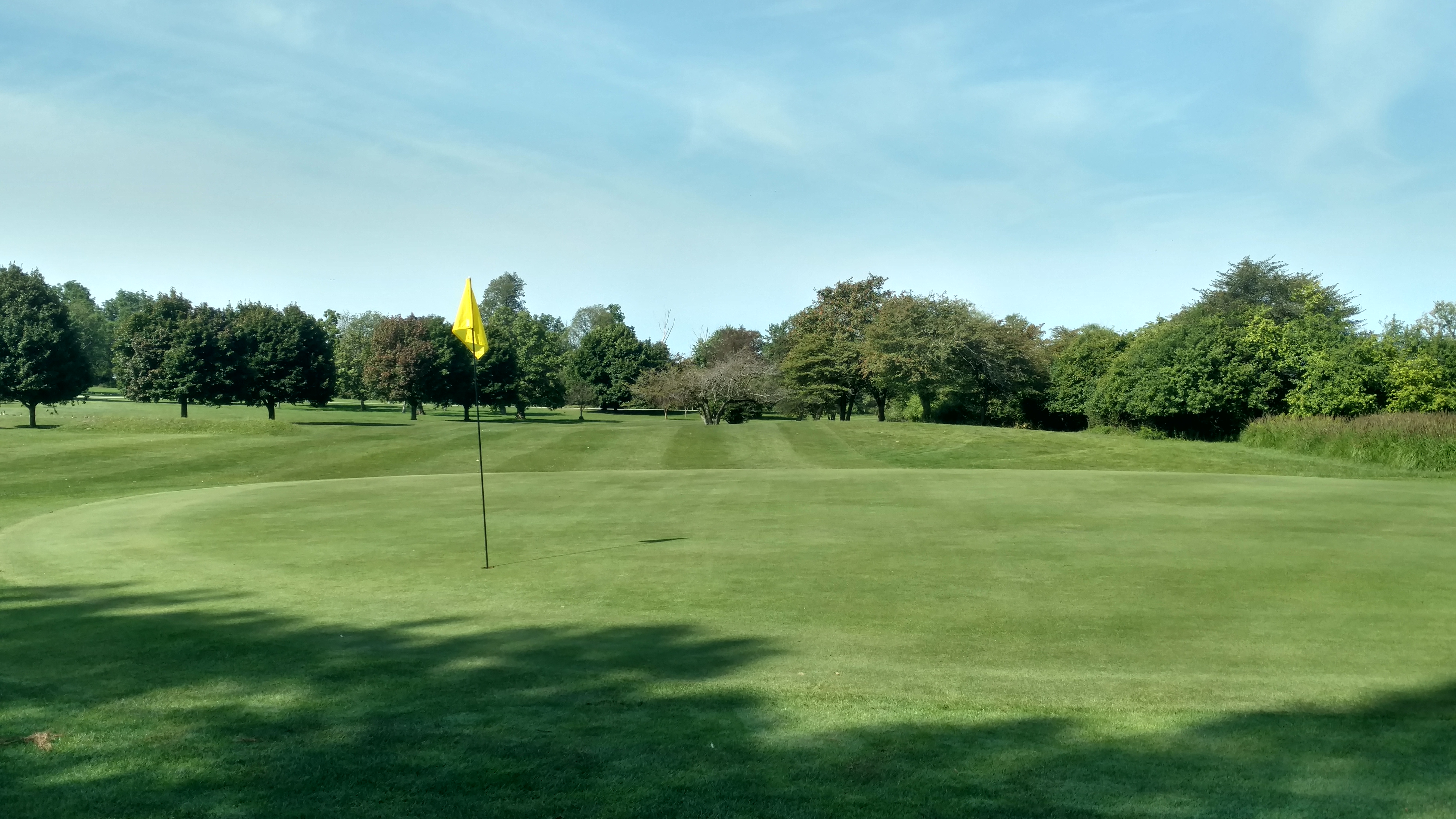 The Sixth hole is the longest par 4 on the course measuring 430 yards from the tee and is the number 1 handicap hole. It is a dogleg left that hugs the shoreline of South Park Lake from tee to green and has a row of mature trees guarding the right side of the fairway.